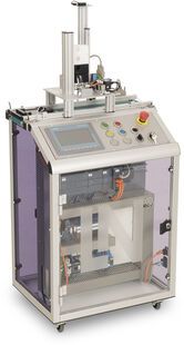 Il sistema si trova sull’unità meccatronica. Il sistema è posizionato sotto l’albero del magazzino di caduta. La stazione di assemblaggio dispone di un magazzino di caduta per sei tomaie per pezzo. Un pezzo in lavorazione viene separato e inserito nell’unità. Il sistema si sposta verso l’estremità del nastro trasportatore per essere preso in consegna dall’unità successiva.