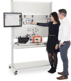 In questo caso, un motore asincrono trifase accoppiato con il banco di prova della macchina servo viene utilizzato come carico dinamico. La potenza attiva e reattiva (cos-phi per il motore) dipendono dal carico del motore e non sono quindi costanti. Il banco di prova della servomacchina può essere utilizzato per pilotare il motore asincrono, alimentando così la potenza attiva nella rete trifase.